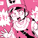 #ファミコン版 #メタルスレイダーグローリー 開発裏話。今回は大物です!『海岸線を走るゲンの車』のシーンです。 画像はゲーム画面全画面表示のグラフィックになります。アニメーションさせたい部分は雲、水面の光、キャラクターの髪、服、ガードレール、ゲンの車、タイヤ、センターラインです。#8bit