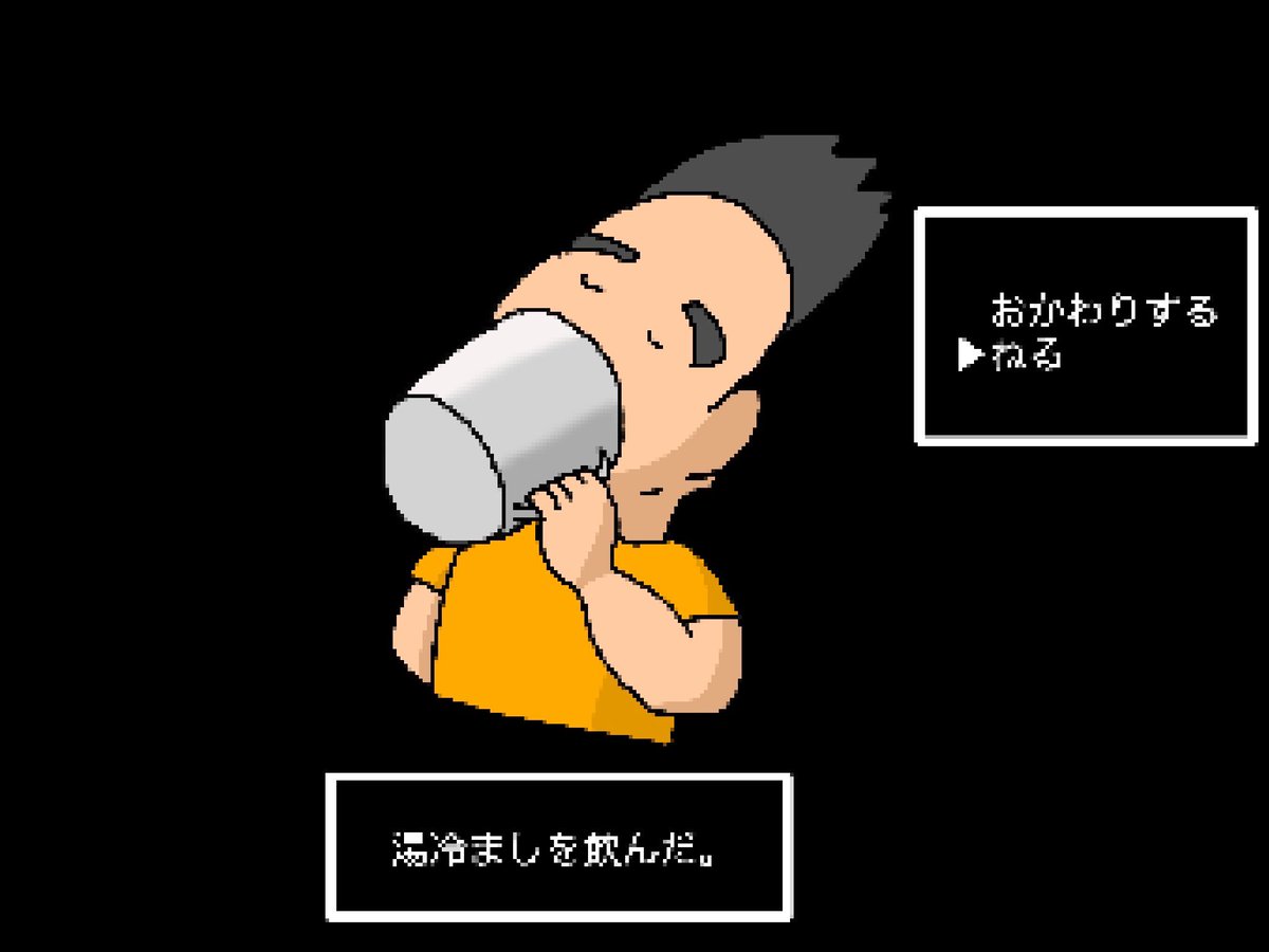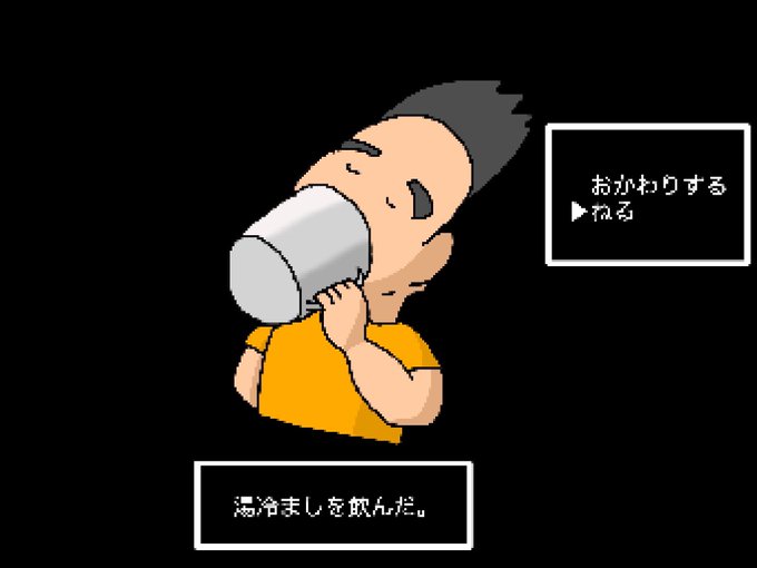 明日はかなり暑くなるようですね。 お互い熱中症に気を付けましょうね。 湯冷ましを飲んだ おかわりする ▶︎ねる そんな訳で今日もお疲れ様でした〜☺️ #熱中症に気を付けよう #イラスト #ファミコン風