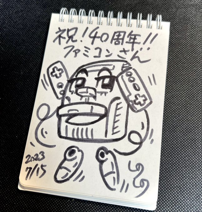 ファミコン40周年😵💫 もぉ、そんななるのかあ。 かなりハマった家庭用ゲーム機にありがとう🤣 #ファミコン #ファミコン40周年 #レトロコンシューマー愛好会イラスト部 #ファミコンロッキー #ゲームセンターあらし