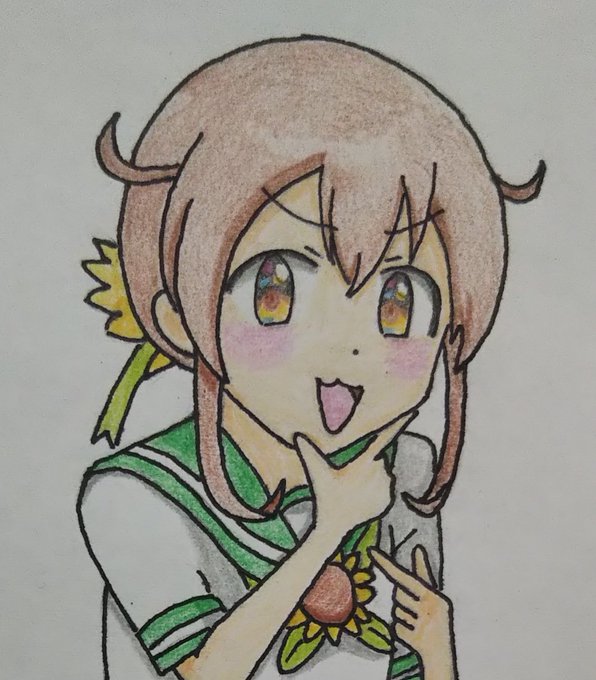 #5月14日は八王子たん擬人化7周年 #5月14日は柏たん擬人化7周年 お祝いにイラストを描きました! #八王子たん 、 #柏たん おめでとうございます!🎉✨🎁✨🎏🐈️ #ビッカメ娘 ( #ナイセン ) #ビッカメ娘を描き隊 #模写 #色鉛筆 #ファミマプリント #絵描きさんと繋がりたい