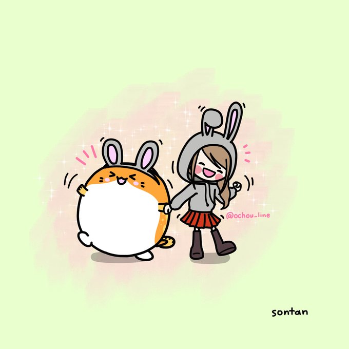 おちょう(@ochou_line)さんの『うさ耳パーカーの女の子』とコラボしたよーー!😆 かわいくて、ちょっとドキドキした🥰 ------- 今回お願いして、ファンアート+コラボさせていただきました😄 #ゆるいキャラクター #ゆる絵 #ゆるキャラ #ニャンプク #ファンアートイラスト #コラボイラスト