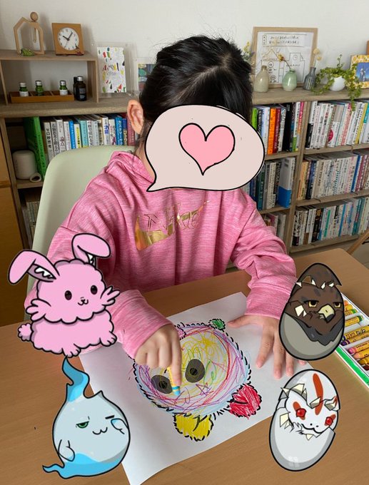 なにやら静かだと思ったらぬりえしてた😂 わたしの大事なもの。家族。 夫と娘たちのおかげで、毎日笑顔で過ごせます😸 #CNPReborn #ファンアート祭り #11月27日10時リリース twitter.com/hideya_a/statu…
