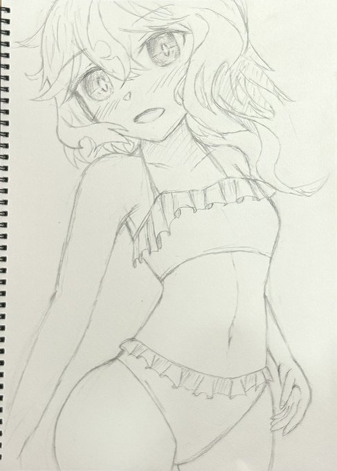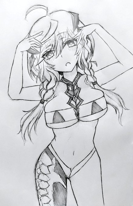 ワンピースタイプって指定があったの忘れてたけどいいや…お腹だよお腹、ギャラルはお腹って決まっているんだ あと紙の大きさという制約があるとこの構図になりがちなのいい加減に対応すべき #ファンキルファンアート #ふぁんきるぎゃらりー