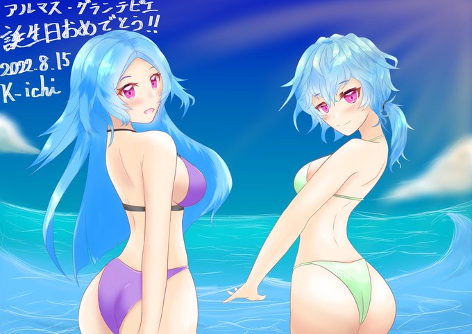 アルマスちゃん過去絵再掲(2022年8月、姉と一緒に誕生日イラスト) 人気投票は最終盤になりました!! 是非アルマスちゃんに投票をよろしくお願いします!! #ファンキル #ファンキル人気投票