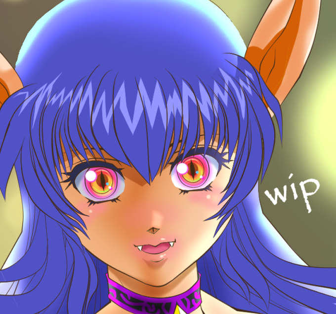 瞳を光らせたいと思ったのは誰だあっ! わ・・・私ですが・・・・ 手間が数倍だ! 手間が増えますが瞳の発光やりたいので!あと簡素なものですが背景も進んでます #イラスト好きな人と繋がりたい #イラスト好きさんと繋がりたい #ファンタシースター