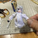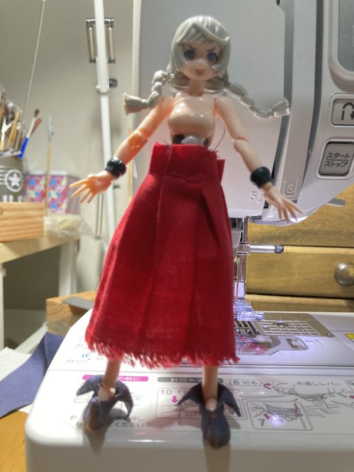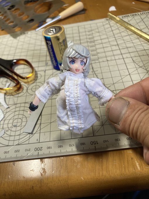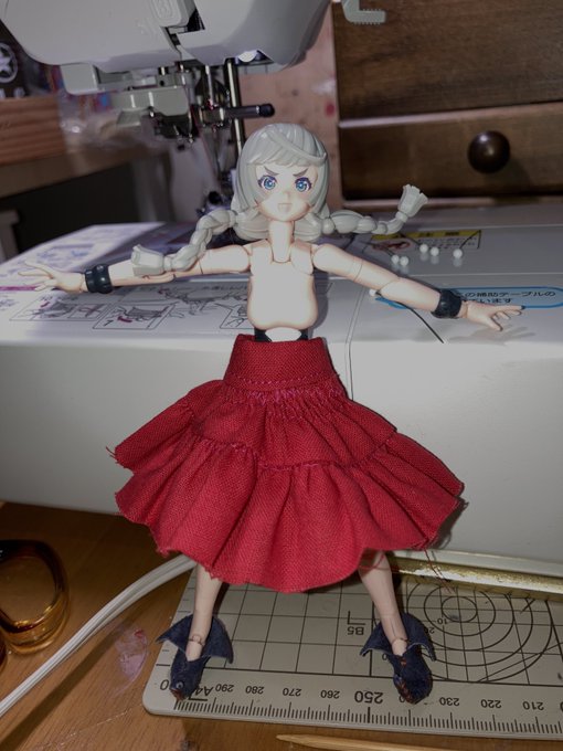 魔女っ子進捗。 しつこいおっさん頑張った! ギャザースカートの寄せとパフスリーブの理屈は理解したが、ヘタクソだからあまり膨らまなかった。 ブラウス完成。 #ファンタジーフィギュアを作ろう #裁縫活動中 #メガミデバイス