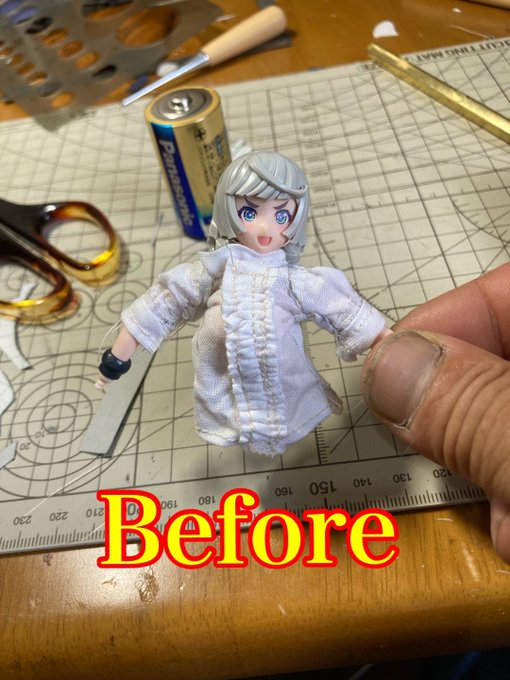 魔女っ子?進捗。 お転婆赤ずきんに幼い頃から仕えているゴーレム執事「ロンゴ・ロンゴ」完成。 身の回りのお世話をするために鞄を持ち歩いている。 「ついてらっしゃい!ロンゴ・ロンゴ」 お仕着せの燕尾服にも挑戦した。 #ファンタジーフィギュアを作ろう #裁縫活動中 #メガミデバイス