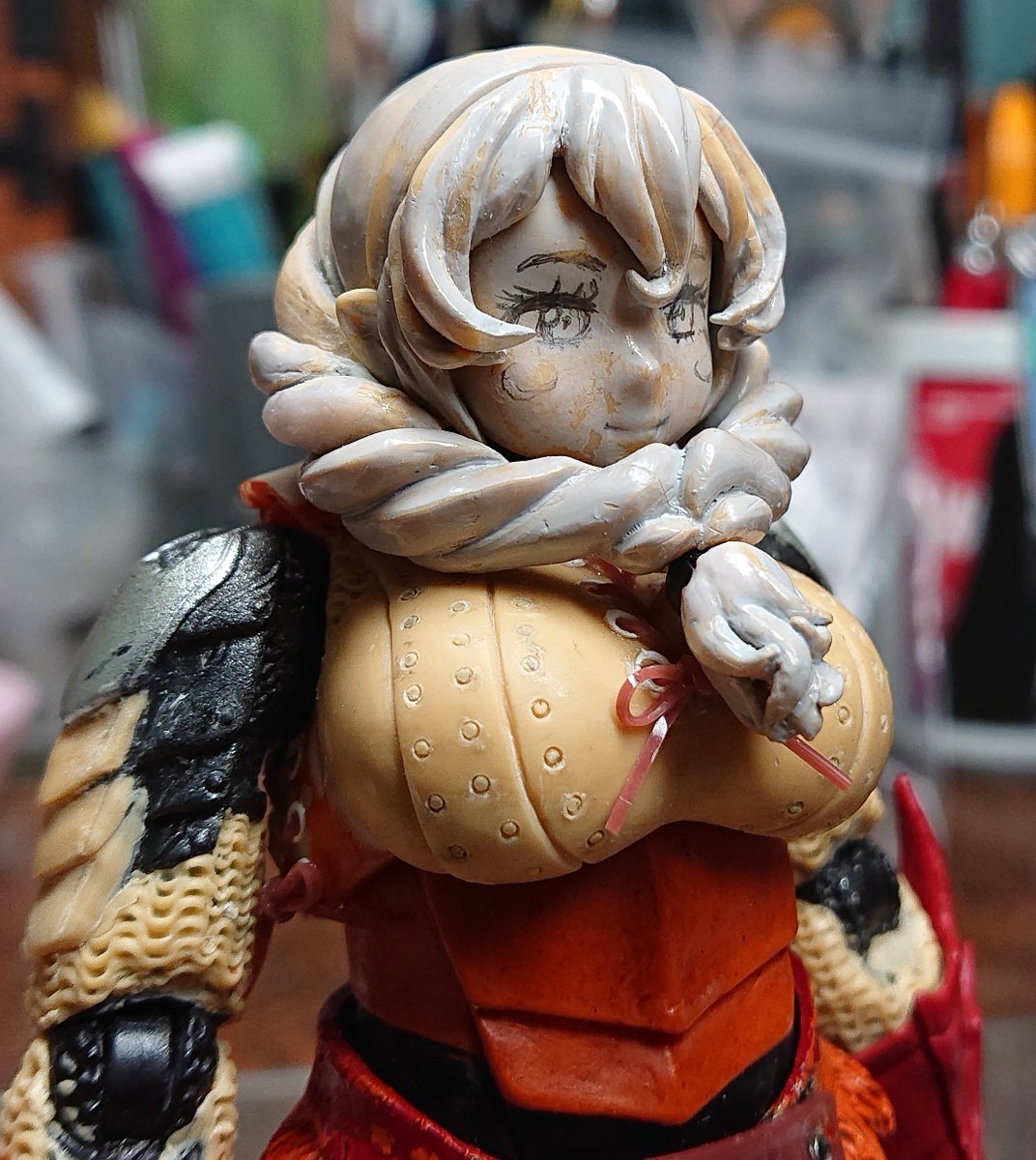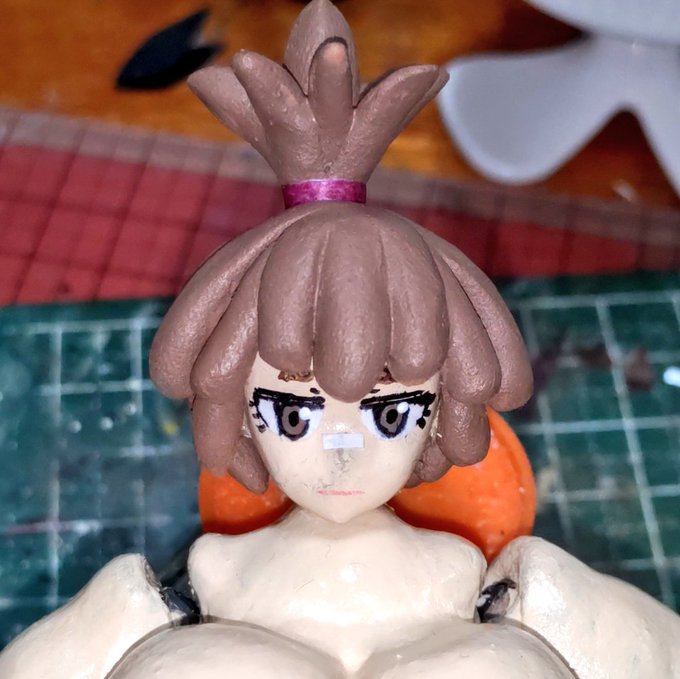 かしまし、3人娘💐 11 新人ちゃんとドワ娘の顔作ってます が、ドワ娘は自分で描いたからか結構イメージ通りなんですけど、デカール使った新人ちゃんのほうは身体と顔のイメージにズレが出たんで作り直しです🤣 (´・ω・)やはり練習あるのみかー、折角買ったのに⤵ #ファンタジーフィギュアを作ろう