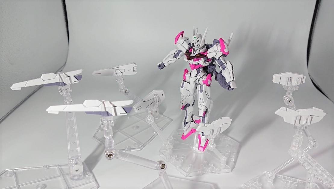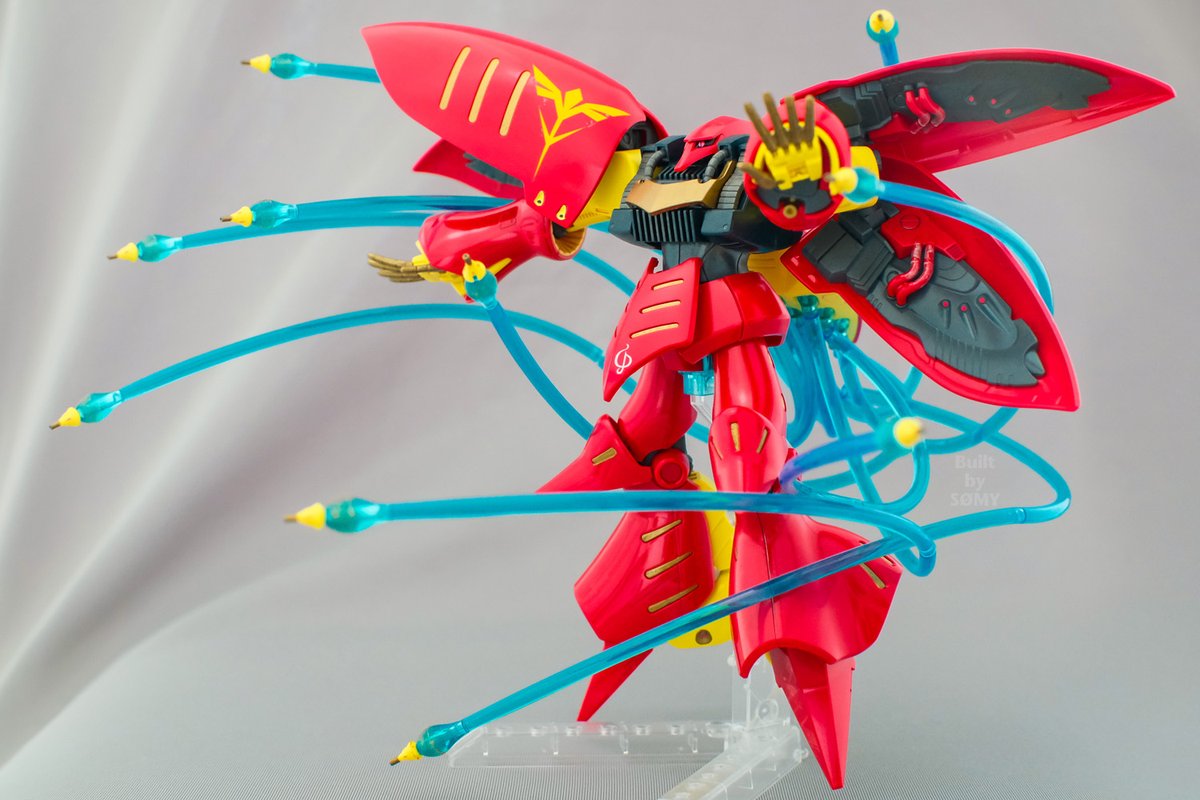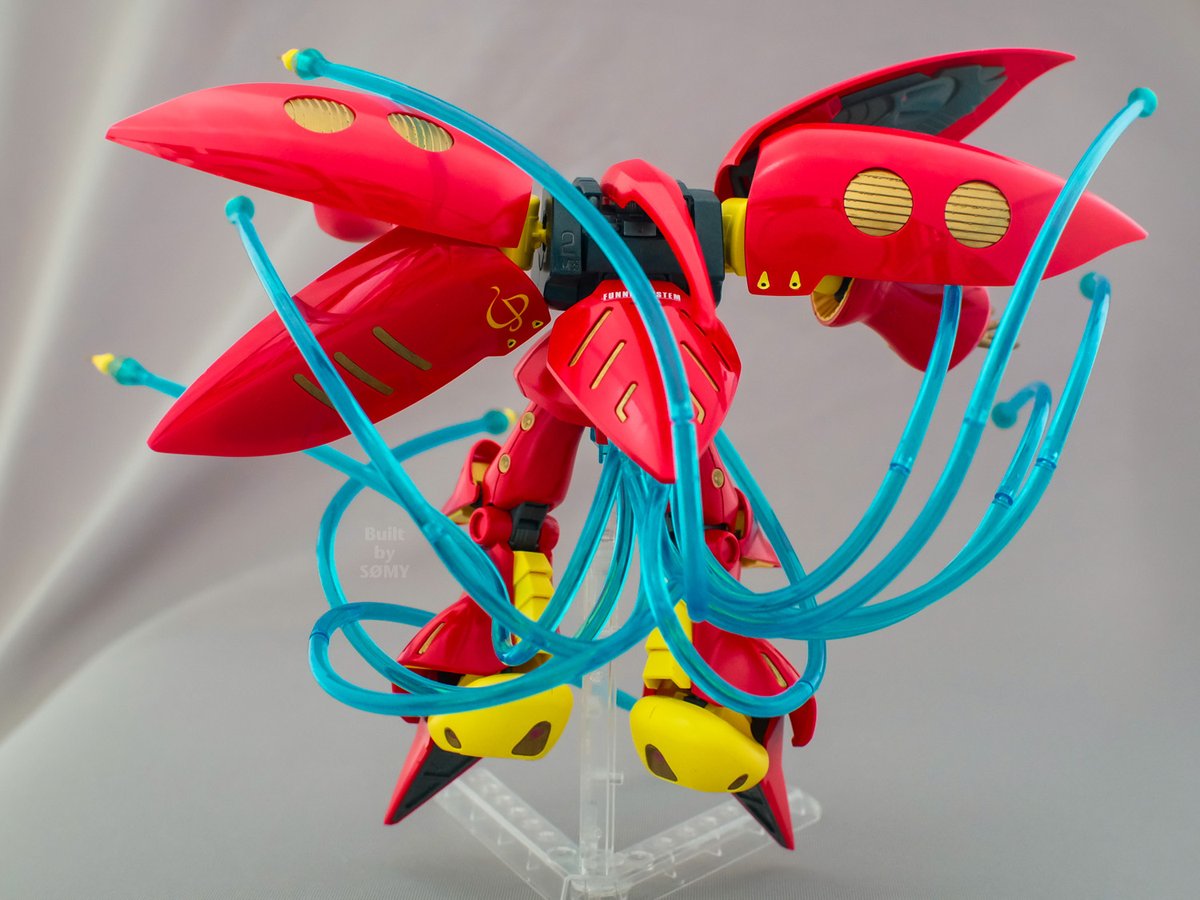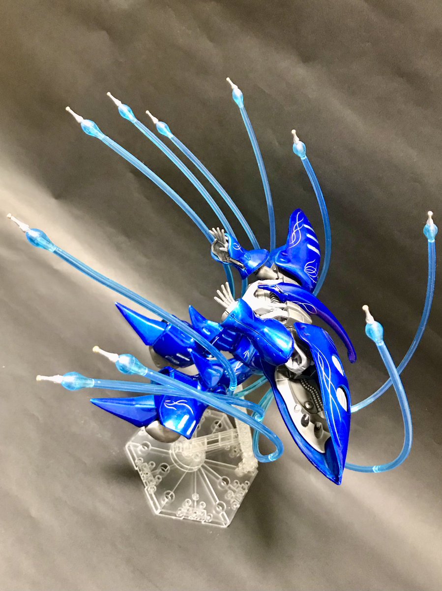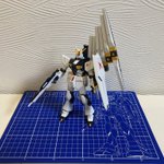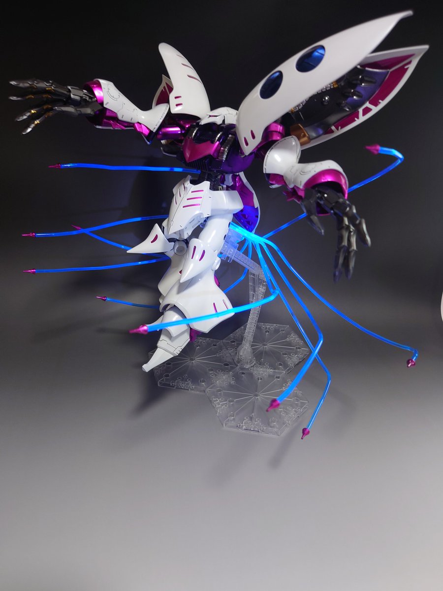 #今年作ったプラモ晒そうぜ 続き> 今年一番の苦労 #キュベレイ #ファンネル #エフェクトパーツ 。曲がり具合と長さの異なる計4種のパーツの組み合わせ、ハマーン様が放射円状に射出した様子等、見本写真から判断するのみ。接続部は緩くクネリと曲がったり外れたり… #ガンプラ好きな人たちと繋がりたい