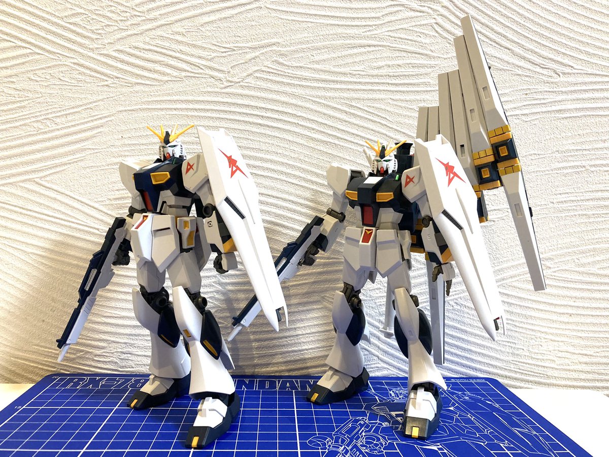 HGνガンダムが組み上がりました。(右) EGνガンダムが(左)です。どちらもカッコイイ!! EGνガンダムのウェポンセットを出してほしいですね。ファンネルとνハイパーバズーカ装備するとよりカッコイイです^_^ #ガンプラ #ガンプラ好きな人と繋がりたい #エントリーグレード #HGグレード #ファンネル