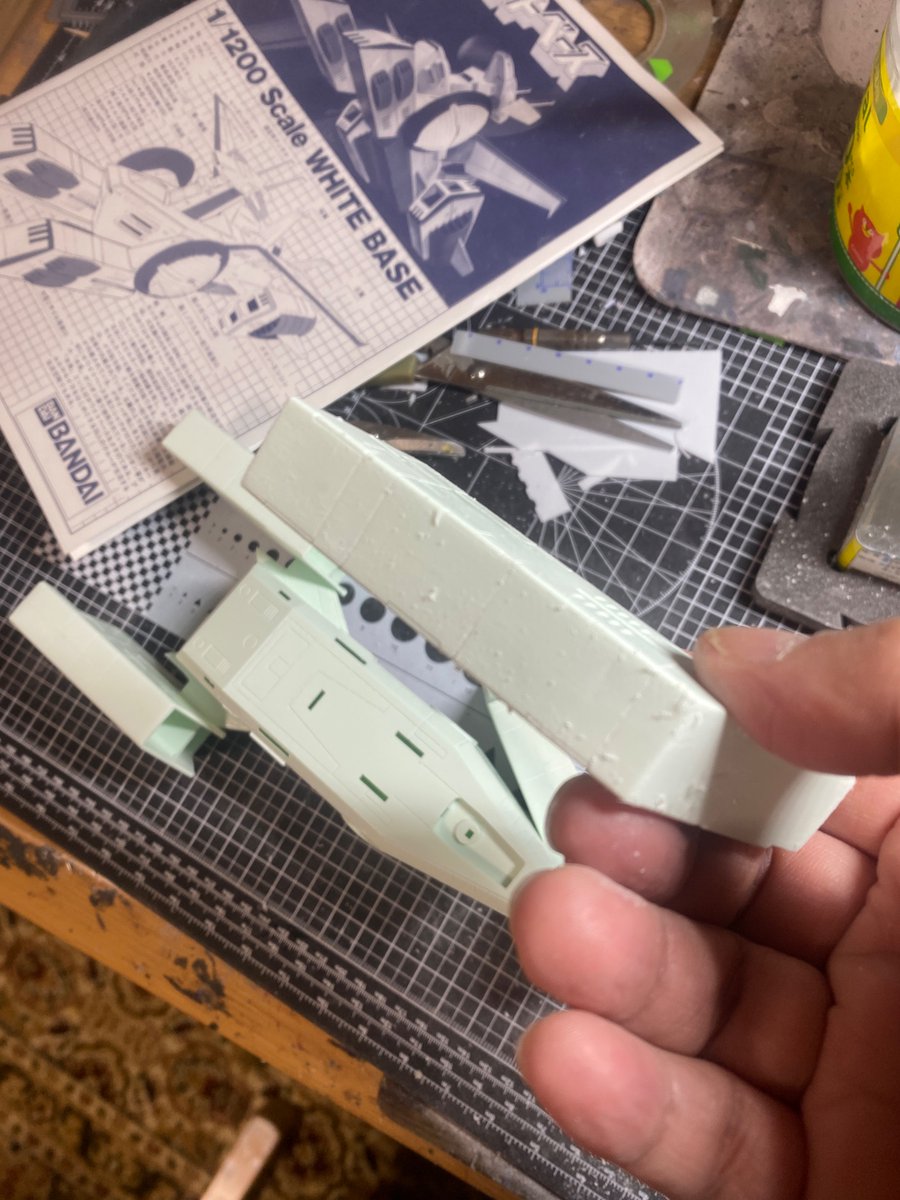 まったりホワイトベース作成中 旧キットの合わせ目消しはマシ苦行しかない。パネルラインを消すほどヤスっても消えんわ!面倒くさいけどポリパテで消します。 #ホワイトベース #ファーストガンダム #旧キット #ガンプラの画像貼るとRTされると聞いて