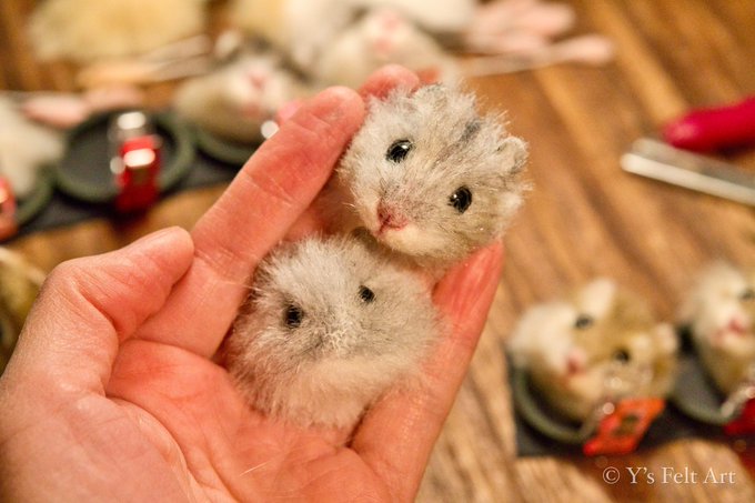 It's nice to be out in the park in the sun☀️ 公園で日向ぼっこ気持ち良いね〜🐹🐹✨ #本物に見えたらRT #ファーリークレイ #furryclay #ファー #粘土 #羊毛 #羊毛フェルト #ドール