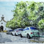 昼休みの30分の練習 #art #drawing #illumination #イラスト #落書き #イラスト好きさんと繋がりたい #フィアット500 石畳がとにかく描きたいんだけど、、