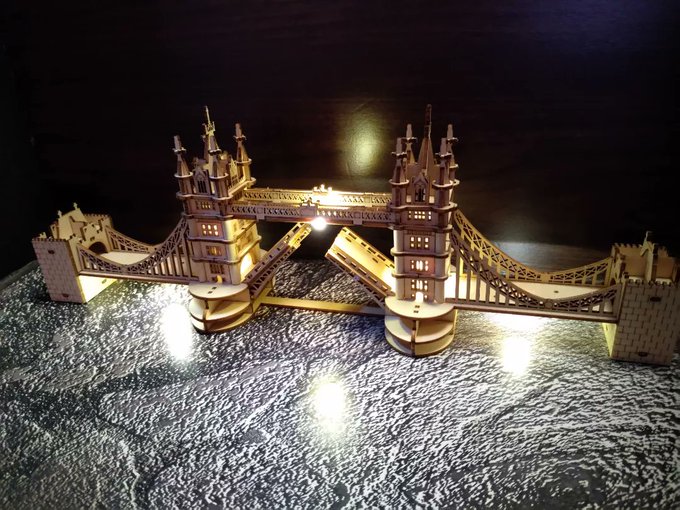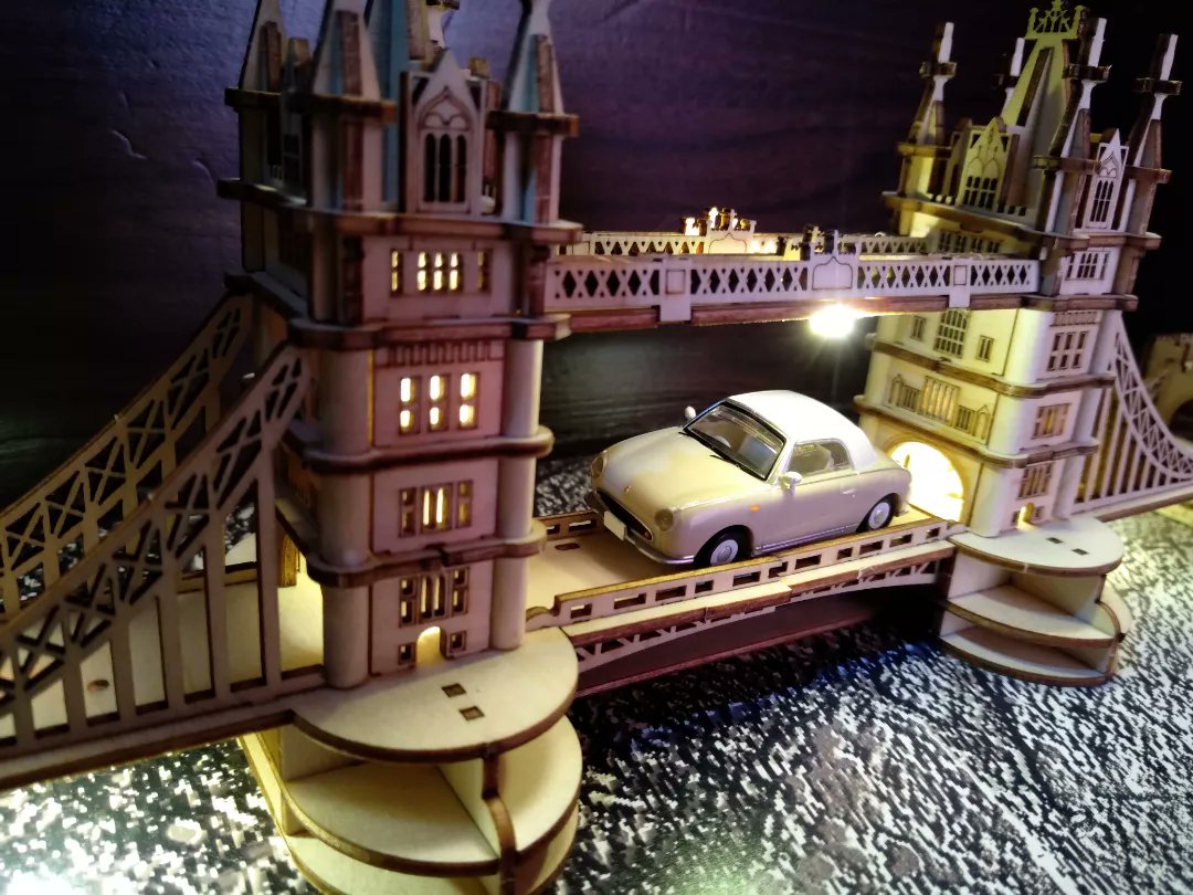 つくるんですのタワーブリッジを作ってみた。つくるんですシリーズは何回も作成しているけど、今回初めて部品を破損せずに済んだ。成長したぜ! #つくるんです #つくるんですウッドパズル #タワーブリッジ #ファインダー越しの私の世界 #フィギュア撮影友の会 #フィガロ