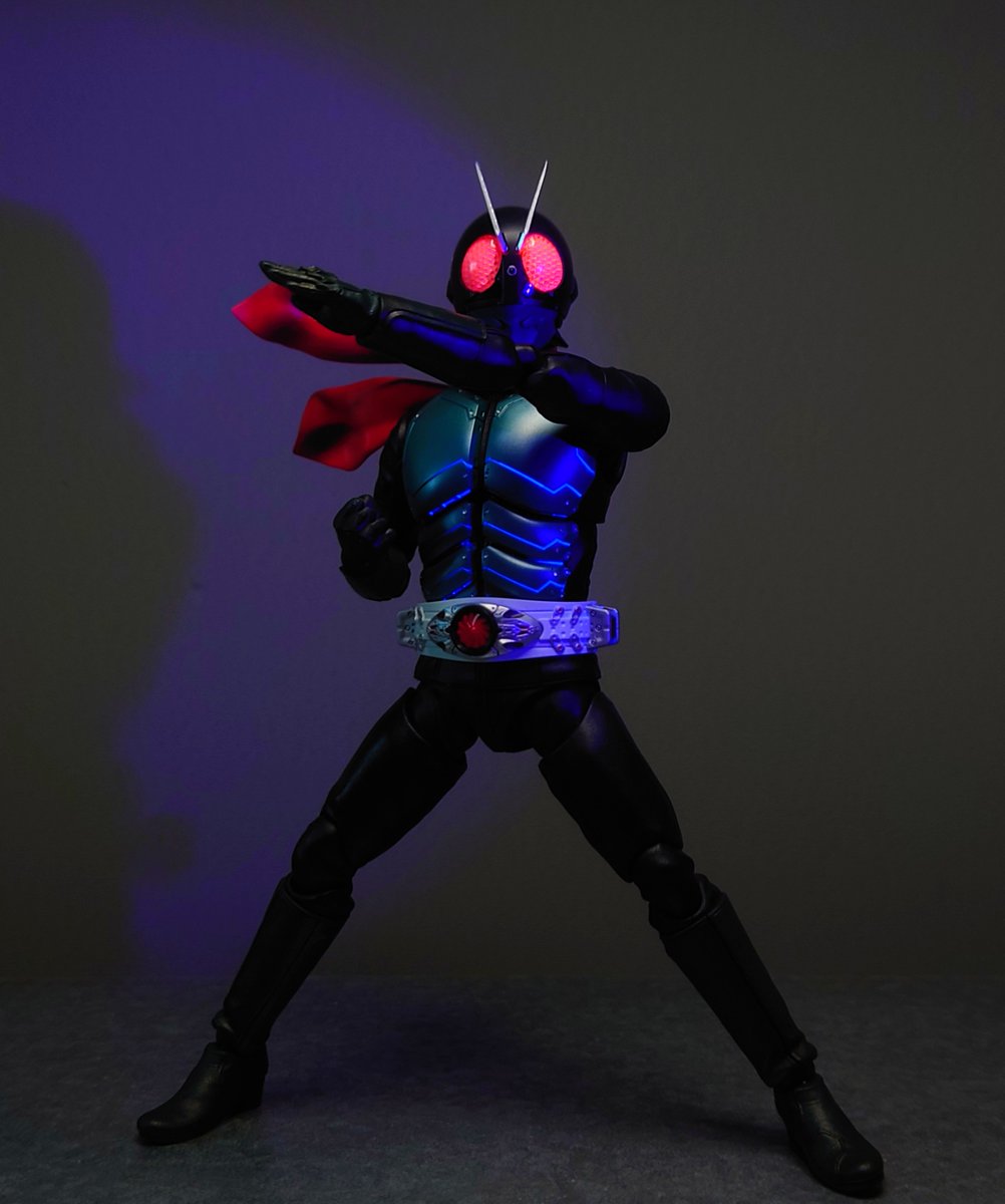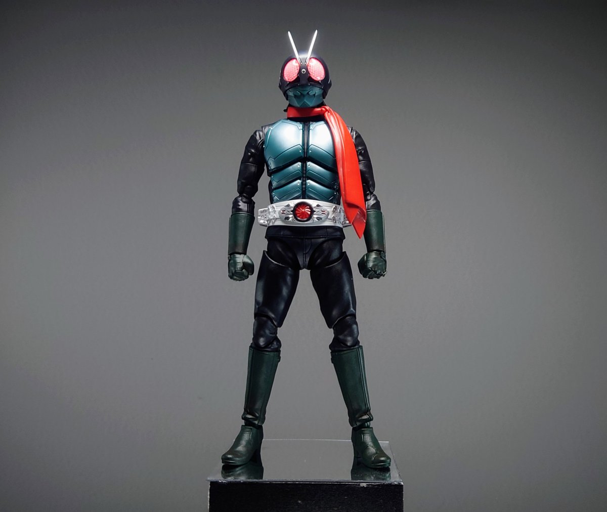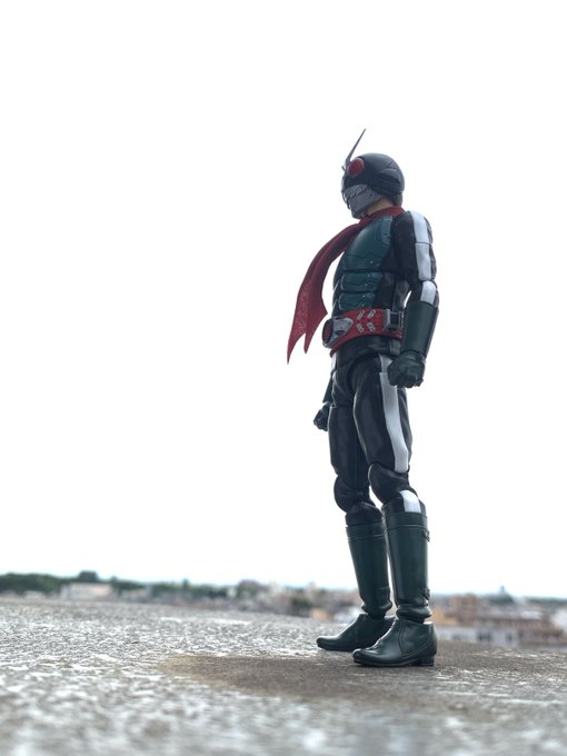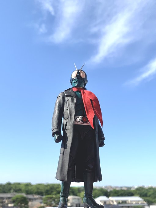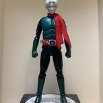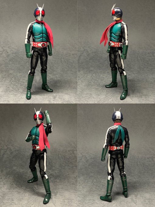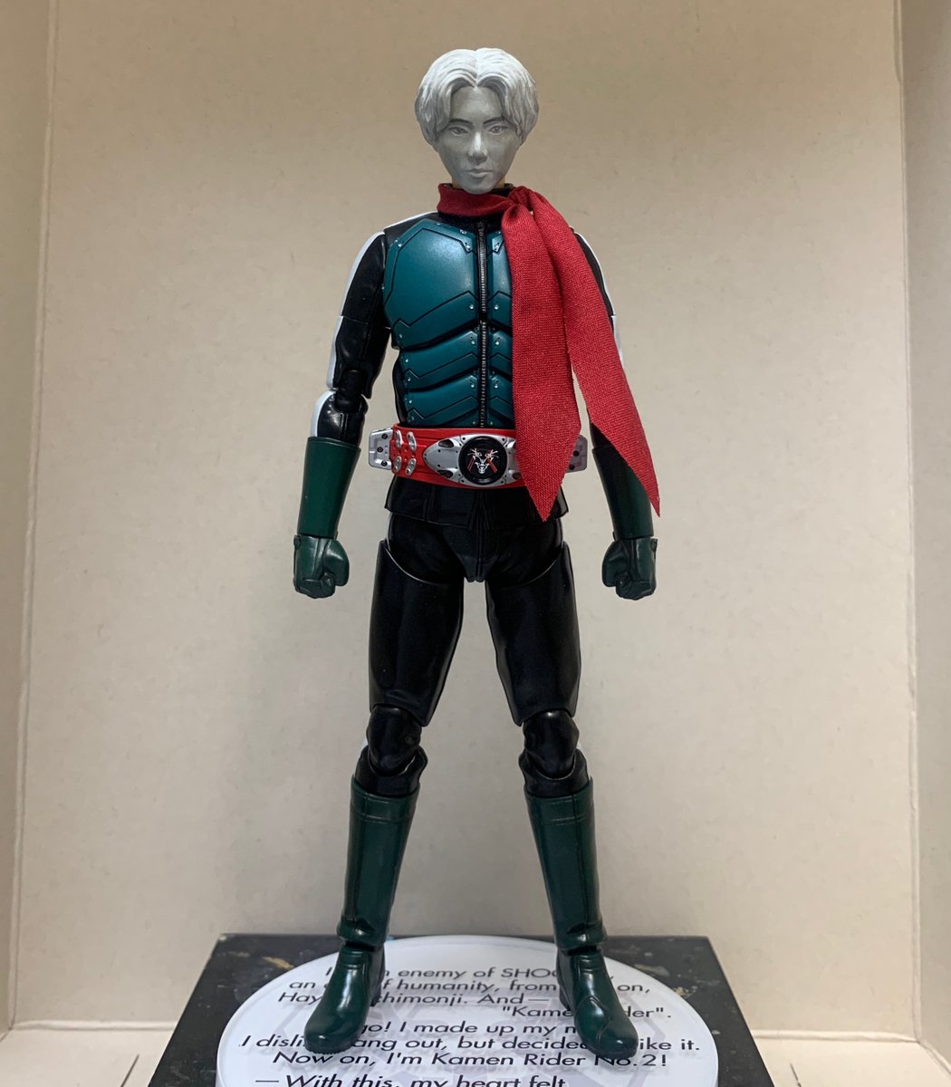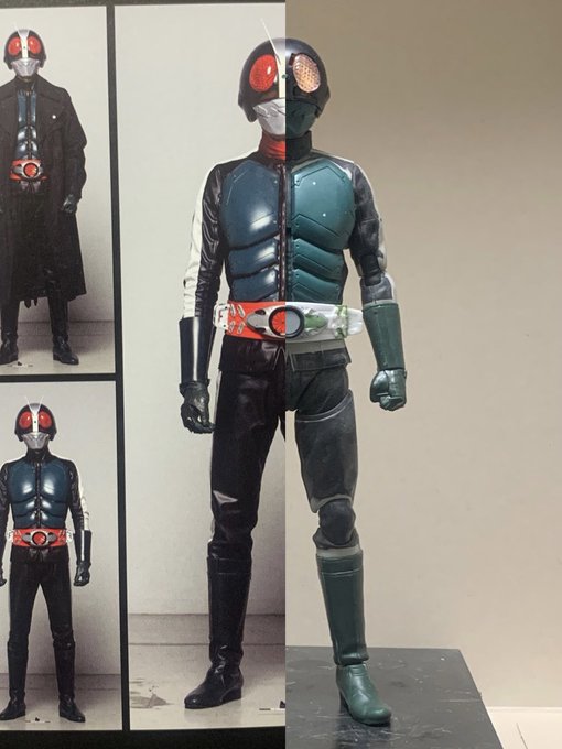 はい!仮面ライダー第2号、あらためて完成です!#バンダイ #フィギュアライズスタンダード 仮面ライダー(#シン・仮面ライダー)をベースに専用のタイフーンとブーツを制作、プロポーションを長身細身体型に改修しスーツの帯を追加しました!