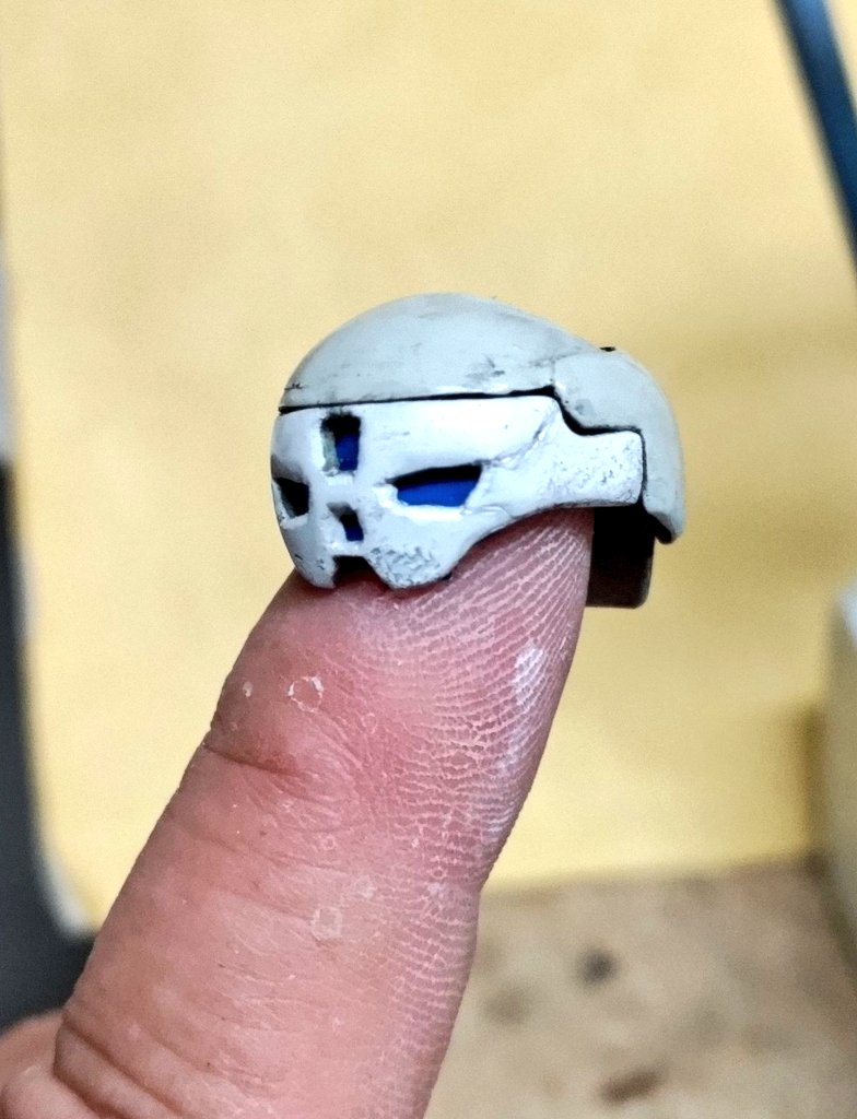 『プロスペラ-ヘッドギア』 #フィギュアライズスタンダード サイズにて、製作〜🥹 何日かけてもおんなじだろうから、 1日で完成💦 アイマスク可動もネタはありましたが、ミオリネをベースにして、積が 設けられないとし却下😭 固定品です。もうなんとなくの ネタ用パーツです😂<RT #ガンプラ