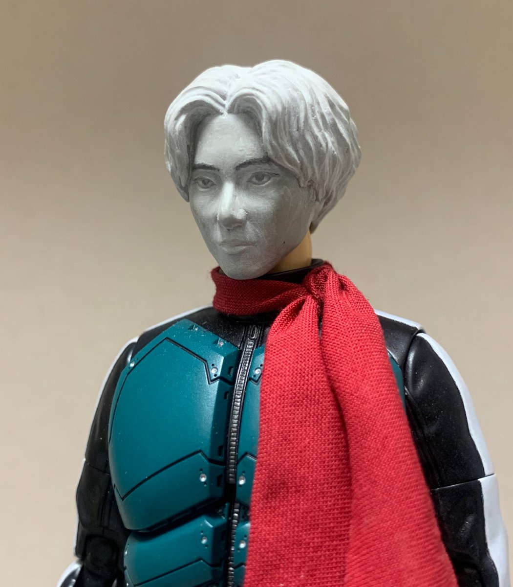 本郷ライダーとの身長差を確認するために最低限のパーツを組み上げ。キット元々のスタイルが一文字寄りになる様に前作の上下高を詰めていたが、ベルト帯ひと幅弱分高くするには脚と腰部分での延長が必要だった。 #シン・仮面ライダー #フィギュアライズスタンダード #バンダイ