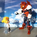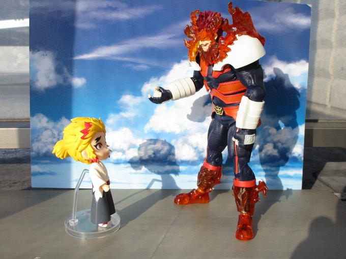 おはよUltra🔥 本日は務めで、荷物はまとめて日曜に… 早くリバイスコンビで遊びたいです。 ところで、青空背景の前にヒーローと子供を置くと、ヒーローショーっぽく見えませんか? #オモ写 #フィギュアーツミニ #鬼滅の刃 #煉獄千寿郎 #マクファーレントイズ #エンデヴァー
