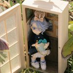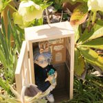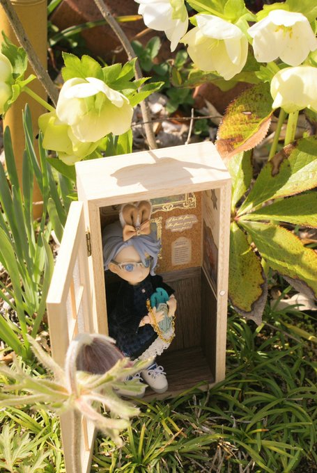 カフェとかで出しても周りからドールを見られずに撮れる入れ物が欲しい…安定しててちょっと見栄えも良いやつ…と思って作った100均工作。屋根があるからやっぱり中が暗くなっちゃうんだけど💦 外で撮ったら小人のおうちの入口みたいで、これも可愛いね😊 #twstドール部 #フィギュアーツミニカスタム