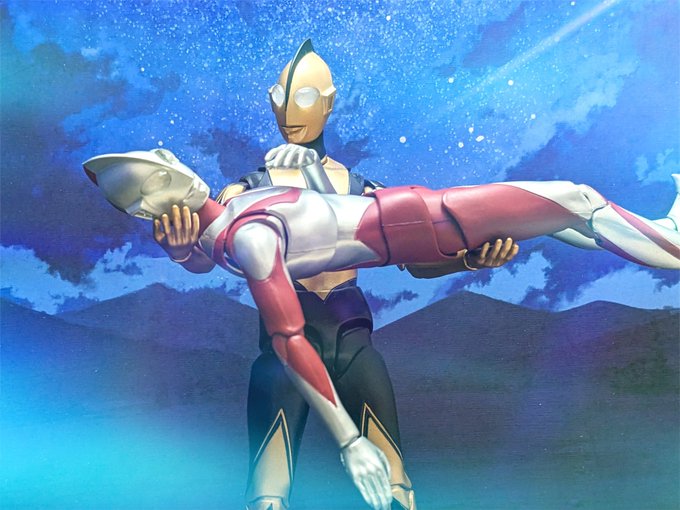4/18「帰」 #フィギュア撮影会の友 #フィギュアーツ写真部 #夜のフィギュア撮影会 戦いの果てに力尽きたウルトラマンの前に、光の星からの使者が現れる。 「さあ、光の星へ帰ろう。ウルトラマン」