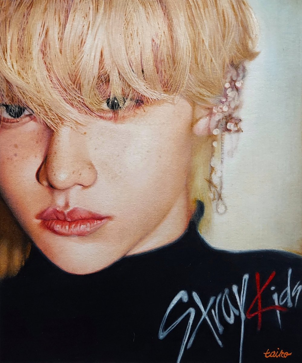 #straykids の #フィリックス 君描きました😊✨ ウルフカットが大好きで、初めて見た時はこんな似合う子いるんだ〜と😍気付いたら描き始めてました✍️🎶 こんな綺麗な顔して、超低音ボイス🎤惚れてまうよ〜🥰 #Felix #ピリクス #Straykidsfanart #色鉛筆画 #coloredpencil #펠라즈 #스트레이키즈