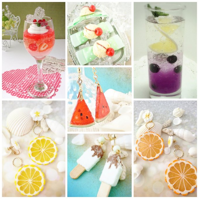 #初夏の創作クラスタフォロー祭り スイーツやフルーツなどをモチーフに、粘土などで「食べられないカフェ雑貨屋」をイメージした作品作ってます。 少しでも、 気になるな…と思えていただければ、嬉しいです😊 初夏…というタグで、見た目でも涼しげな作品を集めてみました。 #フェイクスイーツ
