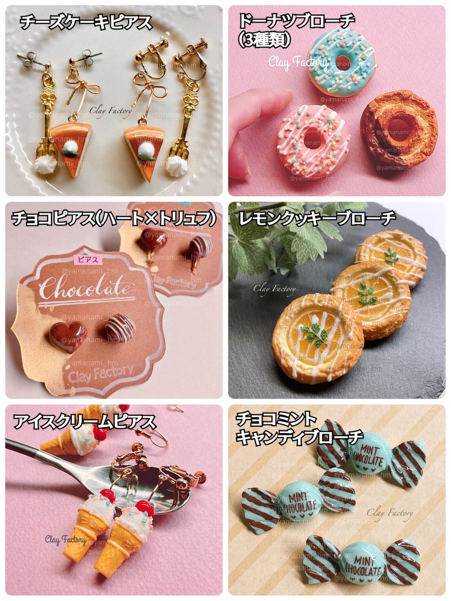 #フェイクスイーツパーティ いよいよ明日から #東急ハンズ札幌店 さまにて始まります! 簡単にですが販売作品まとめました🙌🏻 (2枚目のピアス3種類はイヤリングもあります) よろしくお願いします〜💘