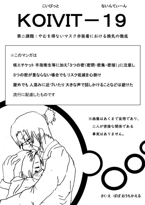 #新しい生活様式 に配慮した漫画です。 過去はnoteで。 ①note.com/ouchk43ru/n/n0… #漫画が読めるハッシュタグ #みんなで楽しむTwitter展覧会 #漫画 #咳エチケット #3密 #マスク #フェイスシールド #KOIVID19