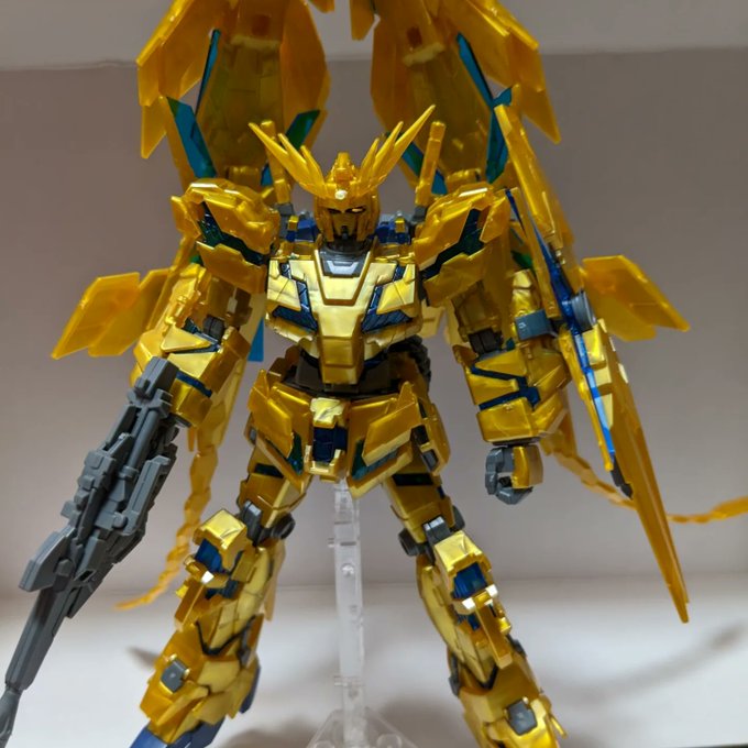 フェネクス完成ー。 トップコート吹かずに放置してたのを、半つやコートしてフィニッシュ✨ 工作はアンテナシャープ化と左握り手を作り直した程度。なんだか白の1号機も作りたくなってきた! #フェネクス #ユニコーンガンダム #ガンプラ