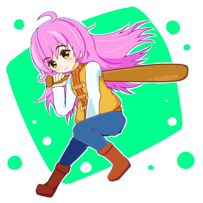 ゲイル達は野球で遊んでそうだしアレックスがファインプレイしたら彼よりもゲイルの方が嬉しそうにしちゃったりアレックスも嬉しいやら照れるやらお前ら青春しろオラァ(早口) #フェノトピア #Phoenotopia #tegaki_dt