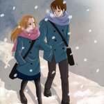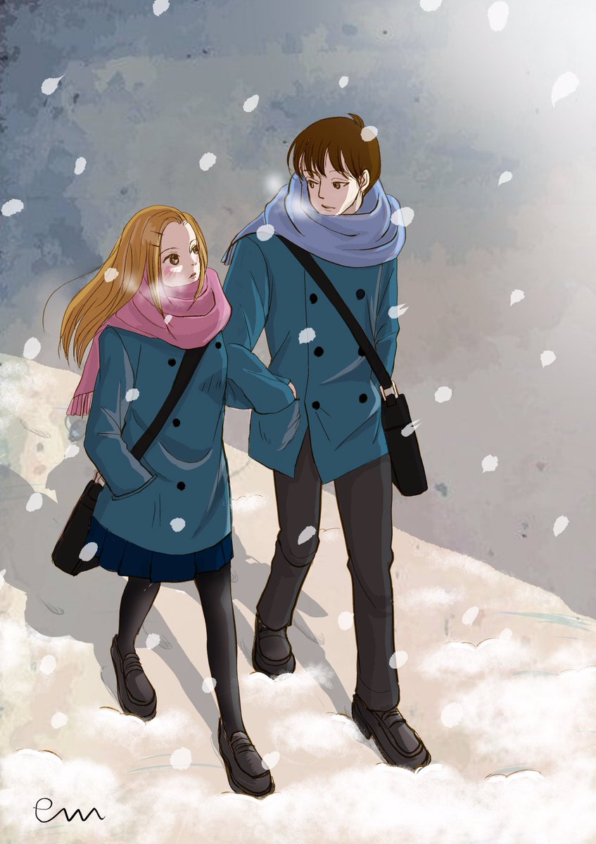 #フェバリッツ 雪の降る放課後、帰り道。 短編のスピンオフなんですが、たぶん初めて冬の漫画のトレーニングがてら爆破されそうなリア充イラスト一枚w #みんなで楽しむTwitter展覧会 #一次創作絵師拡散フェス02