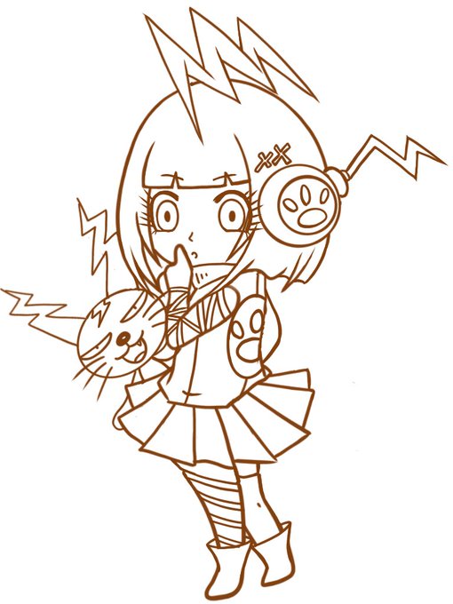 キラーのドクターの電撃を意識して ミンちゃんの猫(イメージw)とコラボ✨の線画🐾٩(ˊᗜˋ*)وwww Σ(゚□゚)あっ!! ミンちゃんが抱いているのは一応・・・猫です🐾ᐡ𖦹 ·̫ 𖦹ᐡ #DeadbyDaylight #フェンミン #イラスト #DbDアート #dbdfanart #絵 #ゲーム #ちびキャラ #女の子 #絵描きさんと繫がりたい