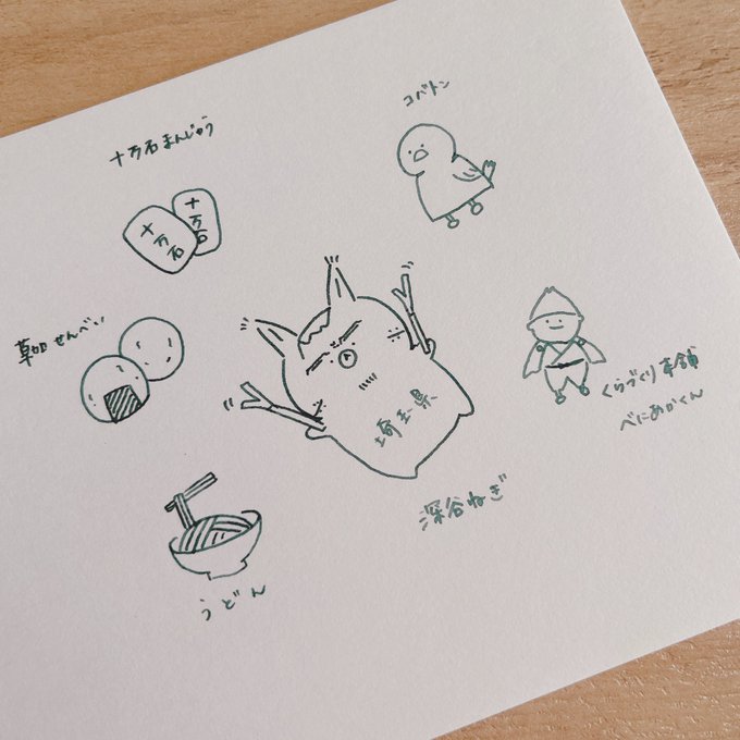 皆さんのおかげでご当地っぽいものが揃いました!ありがとうございます✨ とってもローカル😂 県民にはわかるはず…!(画力が厳しい……!) #ご当地ホゼがみたい #よぐのゆる落書き #フォゼ尾