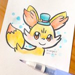 67日目、フォッコ🦊30分に抑えて描いてみた🙏🏻✨ いつもと違う感じで描いてみたくて、マルチライナーのブラシ使ってみた🥺ちゃんと乾かしてから消しゴムで跡消すべきだった…黒い線引いてしまった💦白ペンで誤魔化したけど流石に全部誤魔化せなかった😭 #100日チャレンジ #ポケモンイラスト #フォッコ