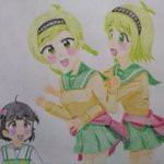 #3月17日はフォトたん擬人化7周年 #フォトたん 、おめでとうございます!🎉ヽ(≧▽≦))ノ🎂✨🎁✨📙📸🐈️ お祝いに色鉛筆だけで、お姉ちゃんと一緒のイラストを描きました!(*≧∇≦)ノ🐈️ #プロスタたん #ビッカメ娘 ( #ナイセン ) #模写 #色鉛筆 #絵描きさんと繫がりたい