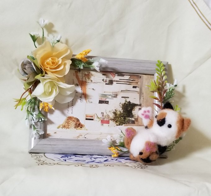 お寒うございます。 室温9度。寒いっす。 風邪ひかないよつ、暖かく過ごしてくださいね。 今日もよろしくお願いします(。ᵕᴗᵕ。) #ハンドメイド好きさんと繋がりたい #羊毛フェルト #minneで販売中 #フォトフレーム