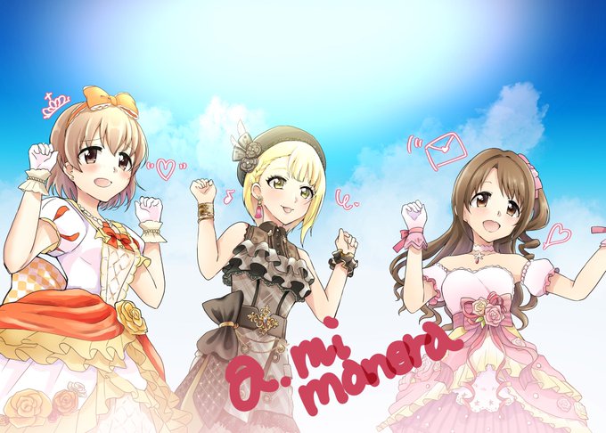 #フォロワーさんからリプで送られてきたデレステのスクショを自分の絵柄で描く アミマネラちゃん〜〜〜!!!💕💕 卯月ちゃんにフレちゃん、そして日菜子ちゃん!!!🎀🎵👑 可愛くかけた、と思う!!
