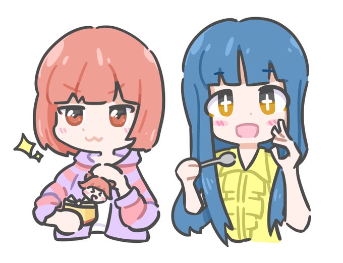 #フォロワーさんからリプで送られてきたミリシタのスクショを自分の絵柄で描く #野々原茜 #北上麗花 プリン職人&プリンハンターさんです🍮 twitter.com/riak_tr_ooo/st…
