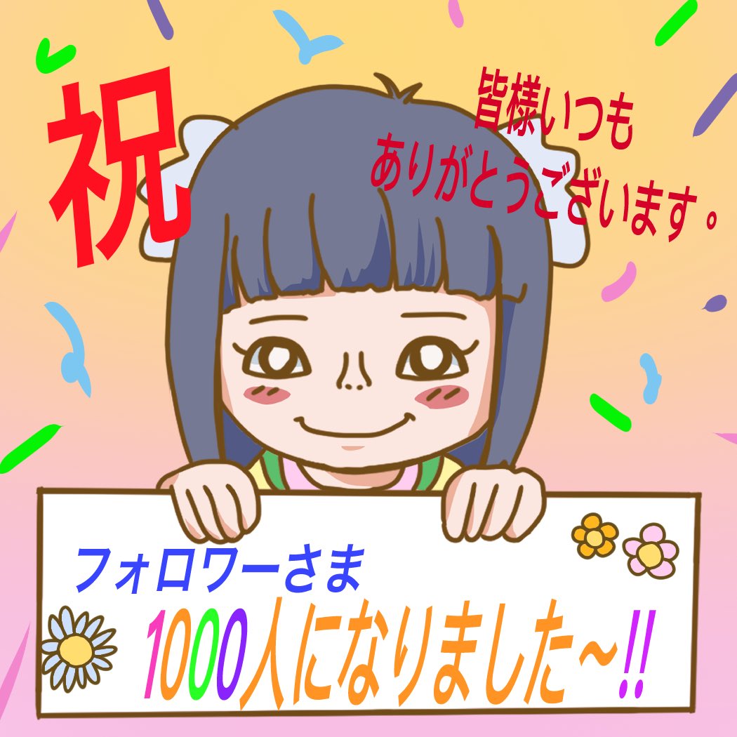 こんにちは☀️ こんばんは🌙😊 ご覧くださっている皆様、いつもありがとうございます!! フォロワー様が1000人になりましたー!!嬉しい〜〜やったー\(^_^)/ これからも、よろしくお願いします✨ #フォロワーさんに感謝 #イラスト