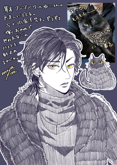 #フォロワーさんのペット擬人化お絵描きチャレンジ @kaota08104 かわいいおねこさん擬人化妄想させて頂きました!! とても触り心地が良さそうなイケメンもふねこさんは、Sッ気ありそうな感じで描きました🥰 切れ長の目は私も好み…😎 リクありがとうございました~😺✨