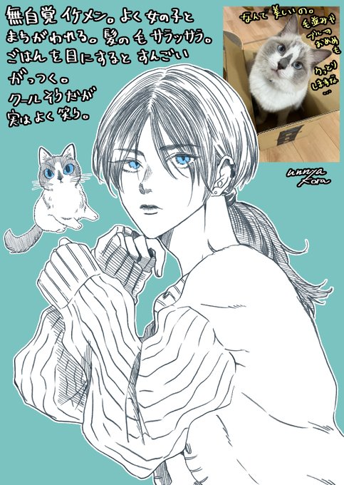 #フォロワーさんのペット擬人化お絵描きチャレンジ @tag3s2 大変お待たせしました!可愛い猫さん擬人化させて頂きました😺 とっても美しい顔立ちや毛並み、CMにでも出てそうです✨ リクエストありがとうございました!!