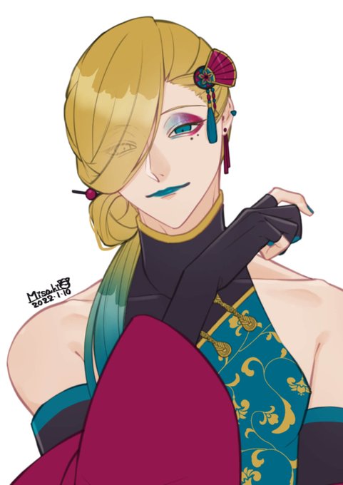 #フォロワーさんの好きな要素を詰め込んだ創作男子を描く #イラスト 反応くださった5名の方ありがとうございました😊🌸 ◆胡散臭そう ◆オッドアイ(目隠れなので説明→左目:青、右目:赤) ◆ヘアピン ◆金髪 ◆片目隠れ ◆長髪(髪括り) ◆和服