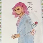 #フォロワーさんの好きな要素を詰め込んだ創作男子を描く #水彩 なんかこうクーデレ表現わかんなくてこれならどうだみたいなイラスト 恋人と待ち合わせ中で早く会ってプレゼント渡して喜んでくれるかな〜ってドキドキしてるお澄まし顔さんみたいな