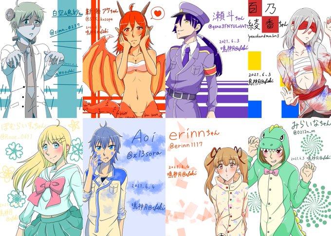 #フォロワーさんを自分の世界観でキャラ化する たいへん遅くなり申し訳ありません! リプいただいた方々、描かせていただきました🥳🥳 もし、自分のを一枚として保存したいという方がおりましたら、DMにて画像をそのままおくります🙌遠慮なく言うてくださいませ🤗 全6枚にまとめております↓