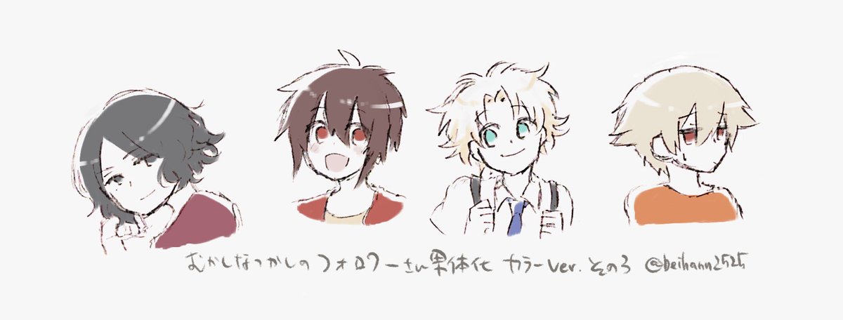 大昔タグで描かせていただいたフォロワーさん男体化、どれもキャラデザがお気に入りで……というわけで久々に描いてみました。色もつけてみた。 まだまだいますのでひとまず第一弾ということで! #フォロワーさん男体化 #08君 もいるよ