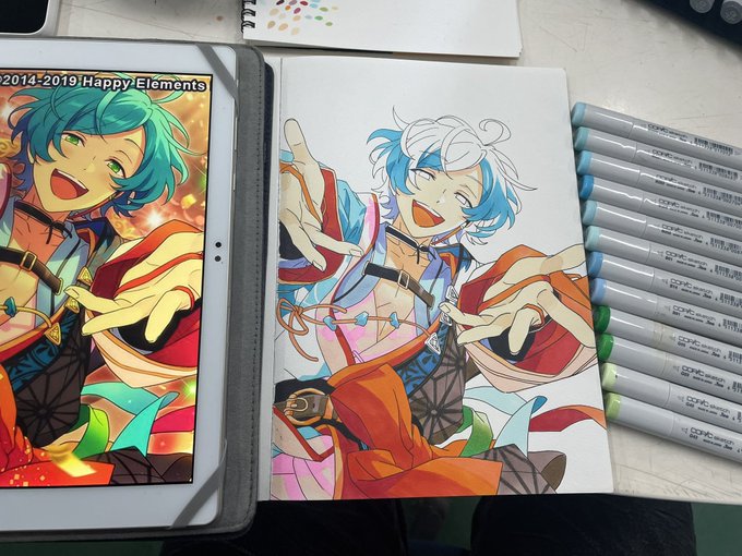 後は装飾品と顔!! もう一踏ん張り☆ 仕事してきます! #イラスト #イラストリクエスト #模写 #あんさんぶるスターズ #深海奏汰 #イラスト拡散 #フォロワーさんの推しを描きたい #フォロワー増やしたい #イラスト好きさんと繋がりたい