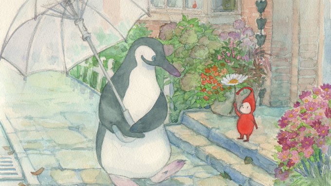 朝から 雨ですが、 ペンギンは へっちゃらです。 #コモリーペンギン #コモリーペンギンと友だち #rocoumie #水彩 #フォロワー1万人以下の絵師が力作を投稿してたくさんのフォローを貰うタグ #フォロワー3000以下の一次創作作家発掘フェス (フォロワー200以下で参加してるけど怒らないで)