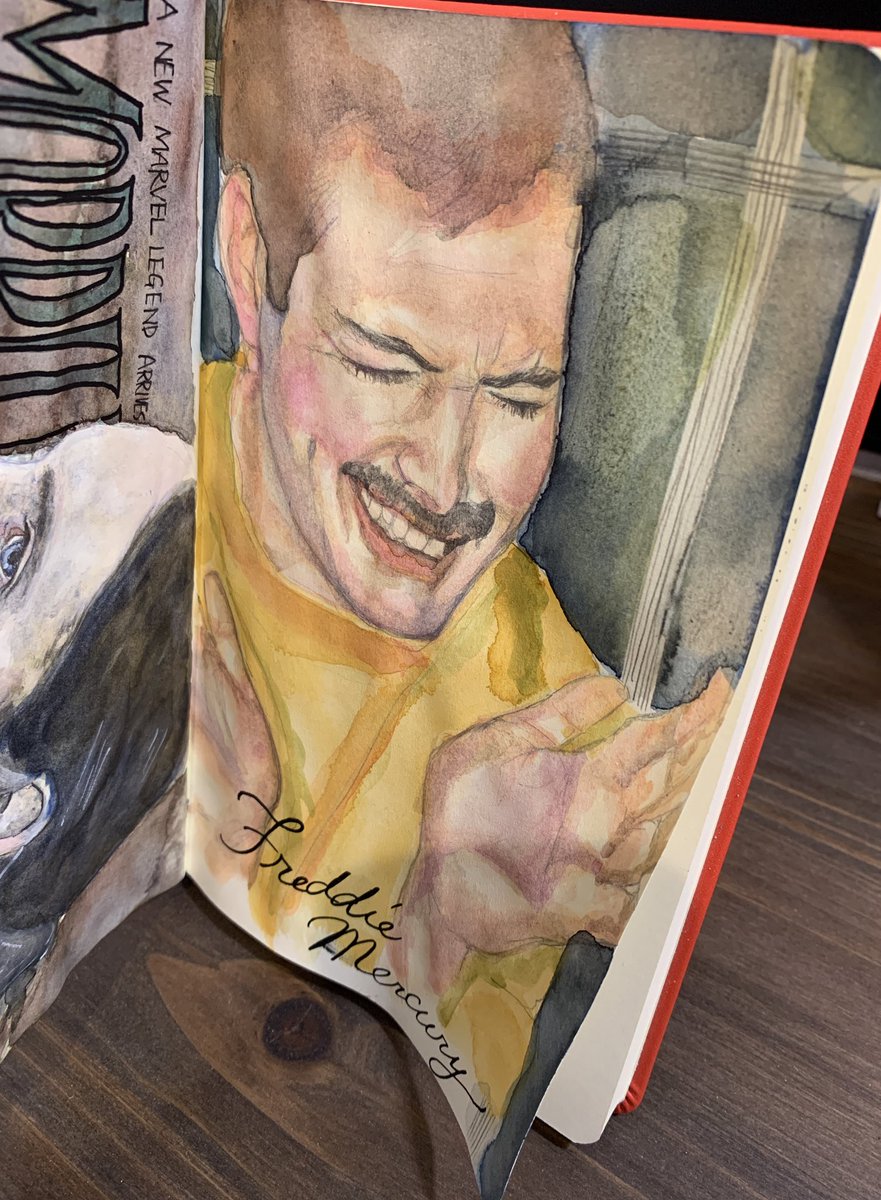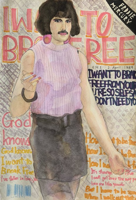 #フォロワー500記念企画 フレディできました😆🎊このフレディ描いてみたかったのですごく楽しかったです😍❣️ もうすぐフレディの命日ですしいい機会を頂戴しました🙏💓 改めて、GunCannon62さんリクエストありがとうございました🙌💕 #FreddieMercury #queen #IWantToBreakFree #水彩画