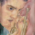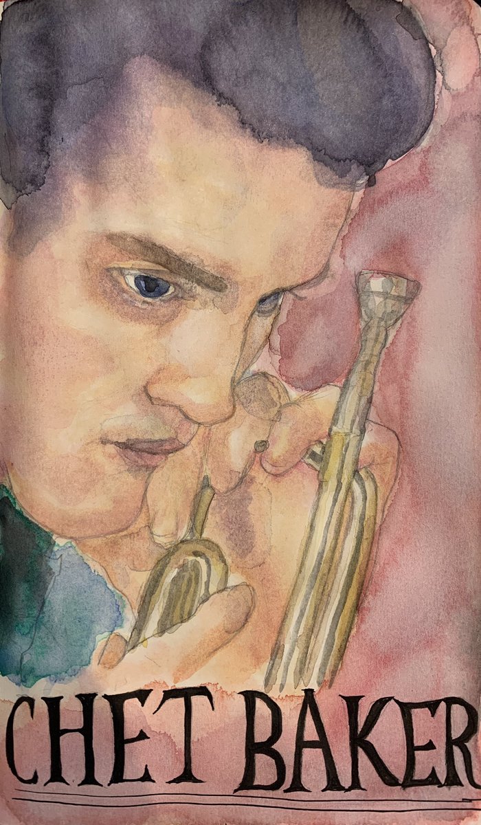 #フォロワー500記念企画 ツチダハルさんよりリクエスト、チェット・ベイカーさんの完成しました🥳❣️🎺 結構トランペットも描くの楽しかったです😍✨ 改めてリクエストありがとうございます✨✨ #ChetBaker #チェット・ベイカー #水彩画