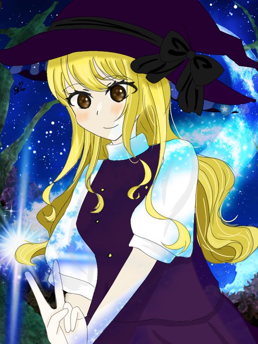 夜の魔法🌙*゚.゚☆。・☆.。.:*・°☆.。 #霧雨魔理沙 #東方Project #東方なりきりさんと繋がりたい #東方絵描きさんと繋がりたい #イラスト #絵柄が好みっていう人にフォローされたい #絵柄が好みって人がいればいいなぁ #フォローしてくれたら嬉しい